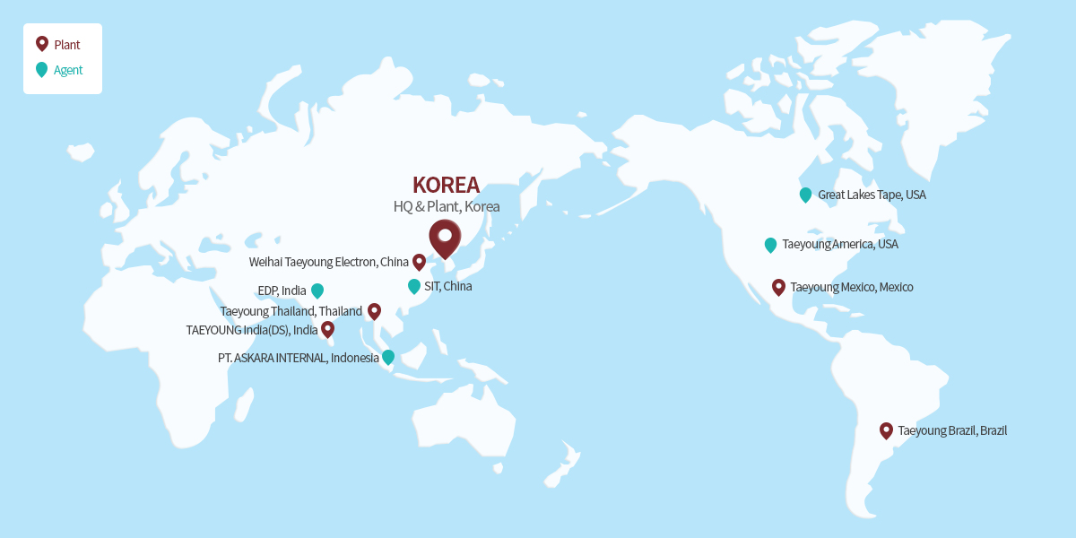 Com sedes na Coreia do Sul e nos EUA, além de fábricas globais na Coreia do Sul, China e México, e agências de vendas na Índia, Brasil, Malásia e Filipinas, a Taeyoung está comprometida em atingir padrões globais de excelência.